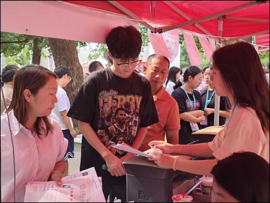 期间,学院党总支书记赵德军、院长刘诺亚、副书记王玥、副院长黄音频亲临太阳集团tcy8722迎新现场,亲切问候报到新生和迎新团队,并勉励工作人员秉持“以生为本”的原则,真正做到用心用情迎接每一位新生及家长,为新同学们送上第一份关怀。