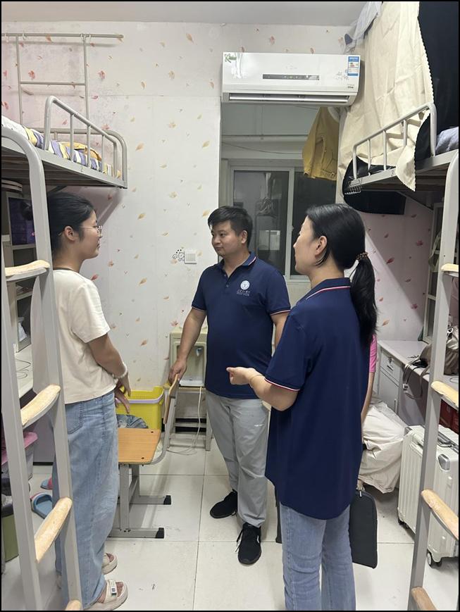 当天和第二天下午,学院领导班子及辅导员分两次深入新生宿舍,关心慰问新同学,叮嘱他们注意宿舍用电安全、有困难要及时与辅导员联系,并表示希望新同学们能尽早适应大学的生活节奏和状态,完成高中到大学的转变,及早做好学业与职业规划,以饱满的热情投入到学习中去,充实且愉快地度过大学四年生活。