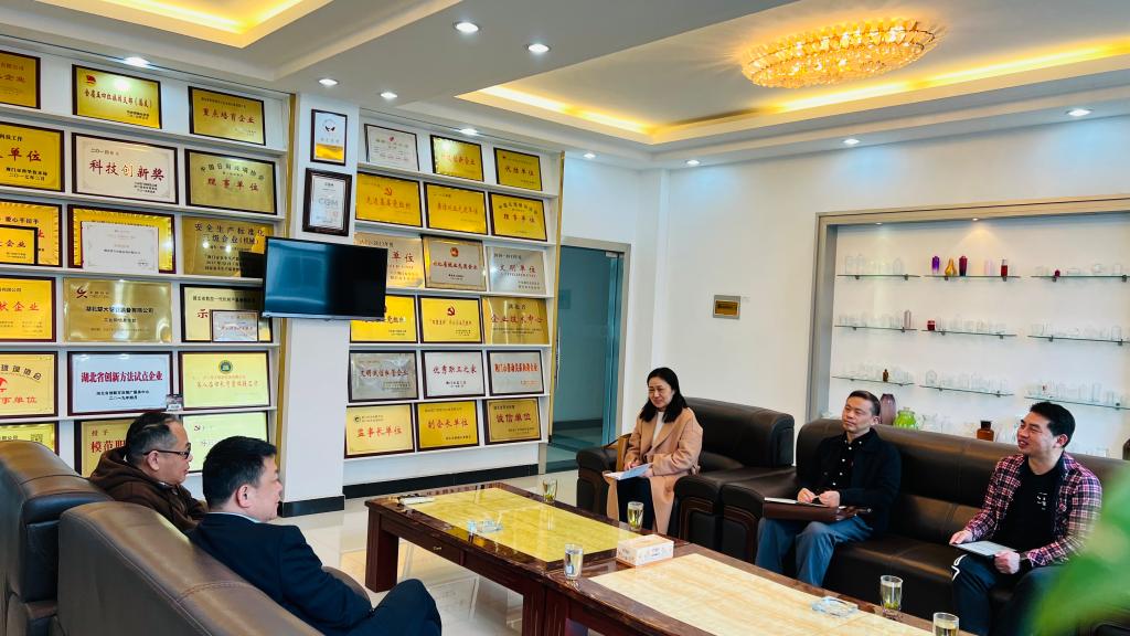 学院院长刘诺亚率科研工作负责人刘娜,商务英语专业负责人张关俊和黄音频,一行四人来到掇刀高新区走访企业,为毕业生谋求高质量就业岗位,探讨院企合作。
