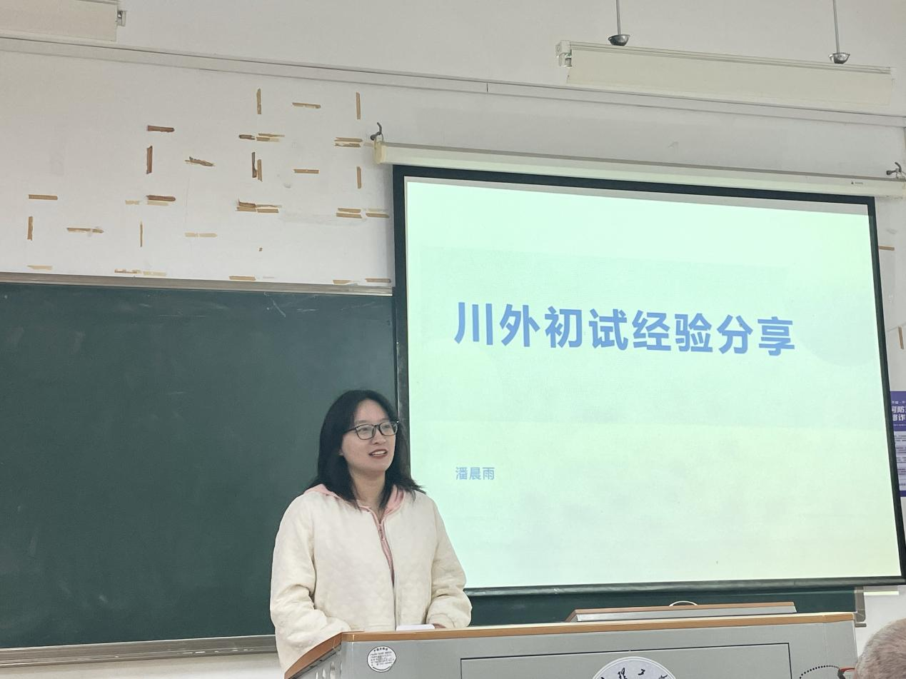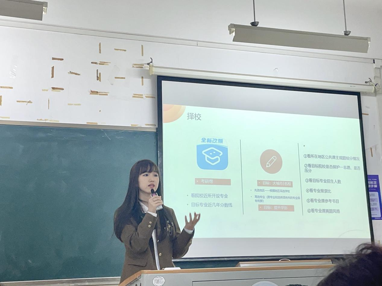 四名2023届优秀考研学生代表作经验分享。她们分别从院校选择、考研的准备、各科备考策略、考研复试及考研调剂技巧等方面分享自己考研成功的学习经历,耐心解答在场同学们提出的有关考研问题。她们寄语2024届的同学笃定信念,克服考研路上的障碍和困难,全力以赴打好持久战,相信最后定能成功上岸。