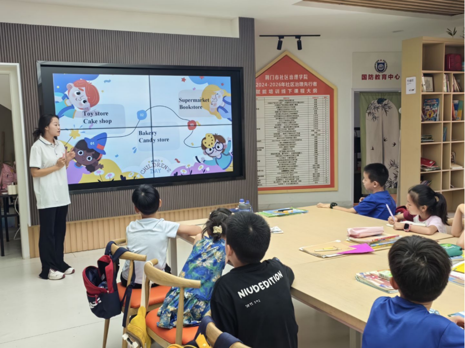 今年是荆葵志愿服务队开展支教活动的第三个年头。由12名英语专业学生组成的支教团队深入荆门市浏河社区、北门社区,通过创新支教内容,打造特色课程,为孩子们编织了一段别样的夏日记忆。队员们创新引入AI技术,让英语课堂焕发全新活力。在单词接力赛中,AI实时计分让孩子们抢答不断;AI模拟商场、餐厅等场景,虚拟“外教”陪练口语,课堂瞬间变为语言实践场;AI呈现的中外文化对比动画,更让孩子们大开眼界。