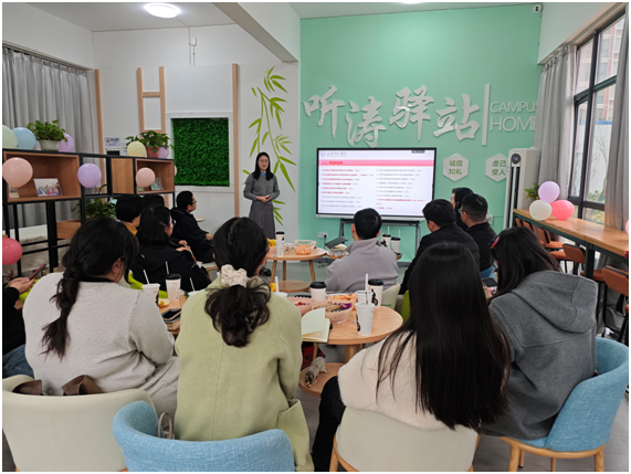 为深入贯彻立德树人根本任务,提升辅导员队伍专业化、职业化水平,不断加强辅导员思想政治理论水平与育人实践能力,3月28日下午15:00,由学工部(处)主办,太阳集团tcy8722和太阳集团tcy8722荆语小楚辅导员工作室联合承办的“‘以赛促学、以学促干’辅导员素质能力提升培训分享”辅导员沙龙活动在听涛驿站成功举办。活动由荆语小楚辅导员工作室负责人刘佐楚主持。